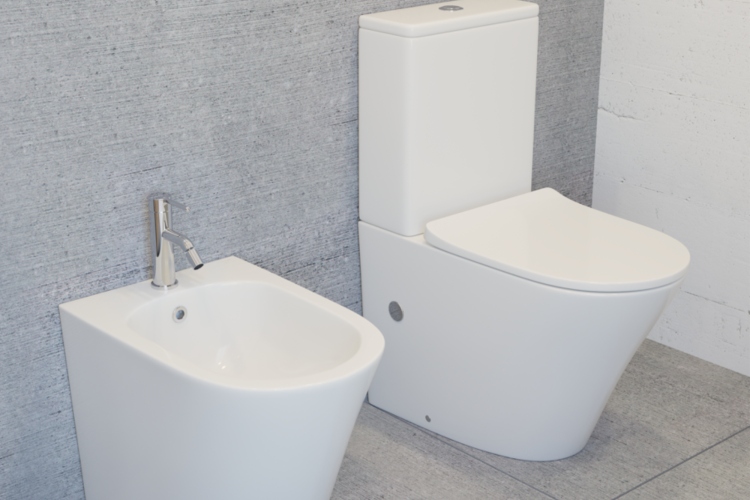 A toilet and bidet with soft, organic lines designed to harmonize perfectly with the Origehm faucets. Crafted from high-quality ceramic, they offer durability and a flawless aesthetic.