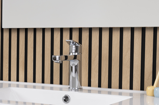 Para crear tu propio paisaje esencial, elige entre negro y cromo y combina con lavabos cerámicos.
