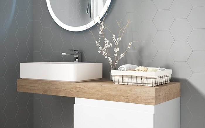 Dos elementos que copan muchas de las tendencias. La necesidad de dar su lugar en nuestro hogar a la naturaleza también pasa por el cuarto de baño. Desde pequeños accesorios de madera a plantas o encimeras. Si no puedes colocar plantas naturales, hazte con una buena imitación que dará vitalidad al baño y una porción del elemento madera.